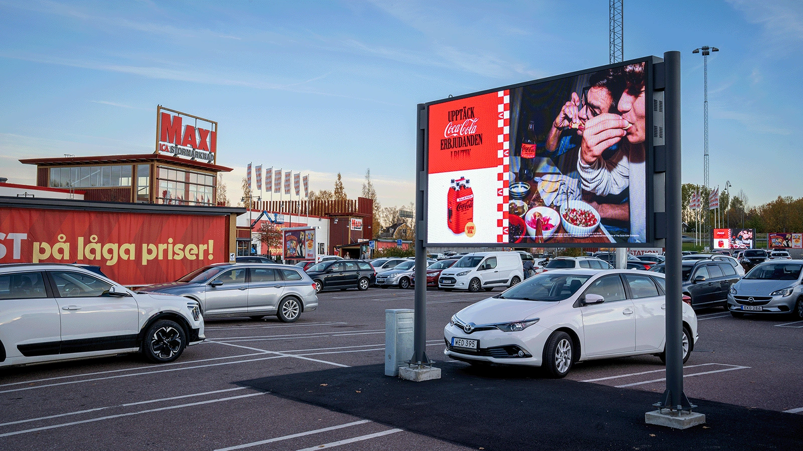 Dubbelsidig parksign-skärm placerad på parkeringen framför entrén till ICA Maxi Bollnäs. Här har ni möjlighet att påverka besökarna både innan och efter köptillfället.