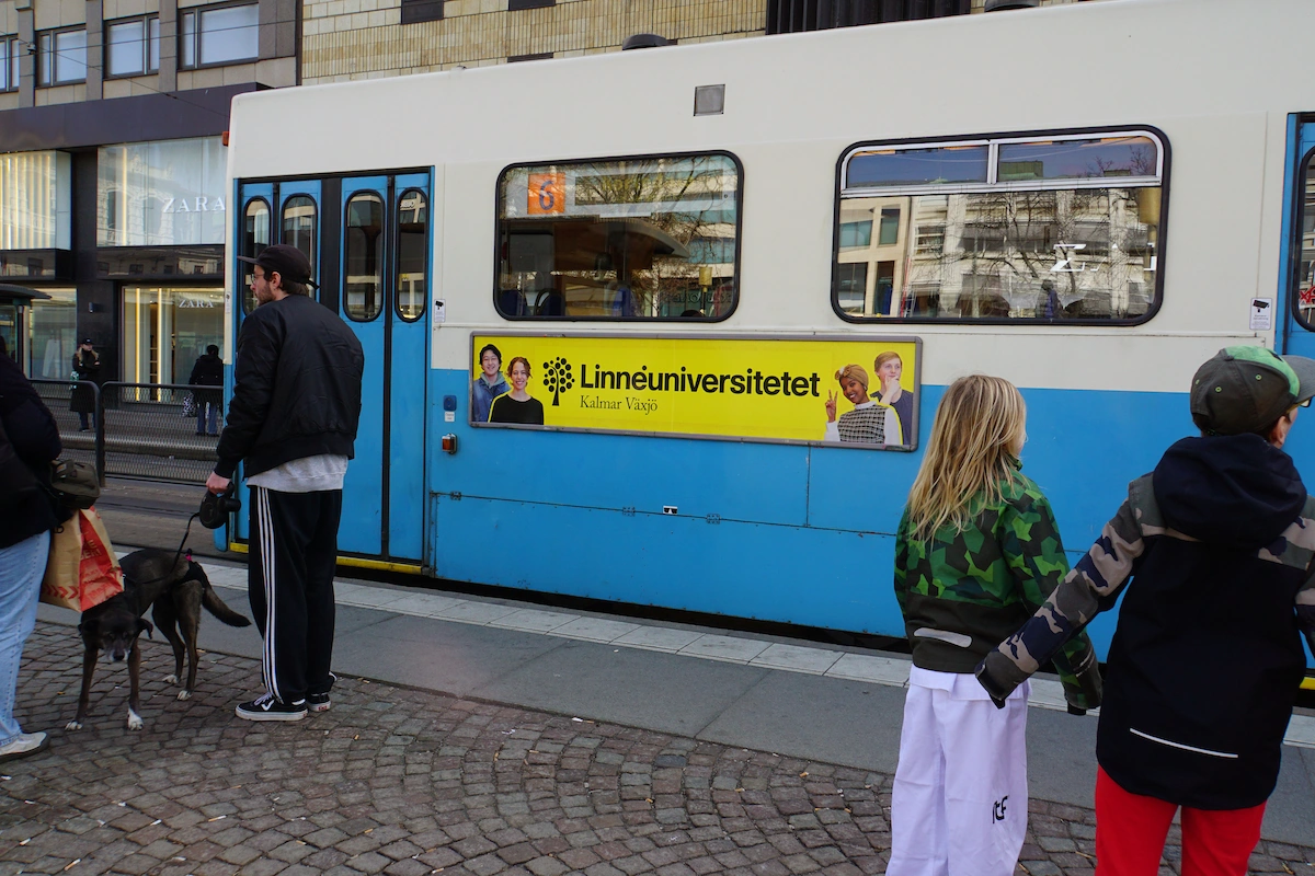 Vill du fånga resenärernas uppmärksamhet i farten? Hop On-formaten är placerade i blickfånget för de som stiger på spårvagnen eller bussen, men är också väl synliga på långt håll. Formatet är ett av våra mest populära och brukar ofta vara fullbokat, så för den som är intresserad gäller det att vara på hugget. Genom att kombinera med placeringar inne i fordonen så kan man påverka resenärerna flera gånger under resan.